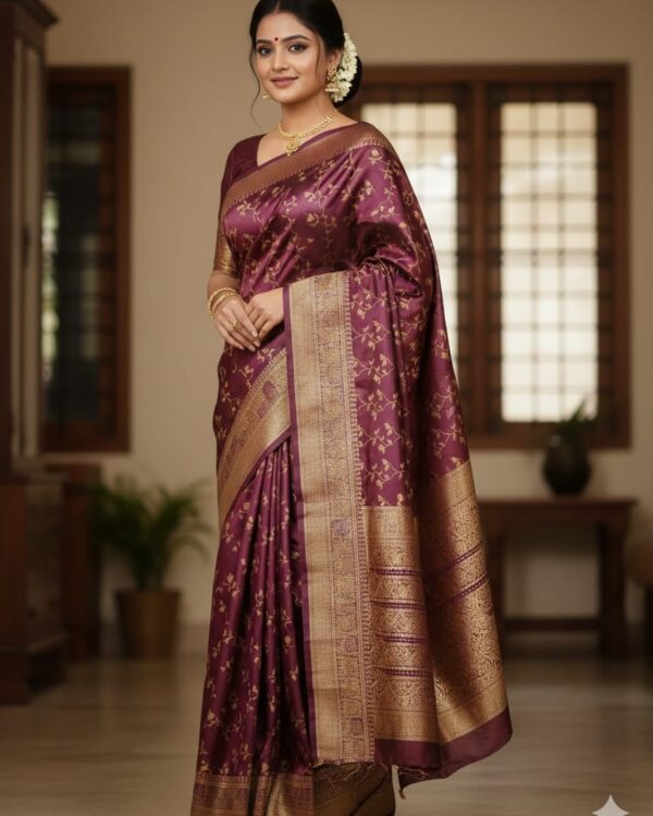 আপনার ঐতিহ্যবাহী লুককে দিন রাজকীয় ছোঁয়া এই মনোমুগ্ধকর শাড়ির সাথে। সুচারু জরি কাজ ও সমৃদ্ধ সিল্ক ফেব্রিক দিয়ে তৈরি, যা বিয়ের অনুষ্ঠান, পূজা বা যেকোনো উৎসবের জন্য একেবারে পারফেক্ট।